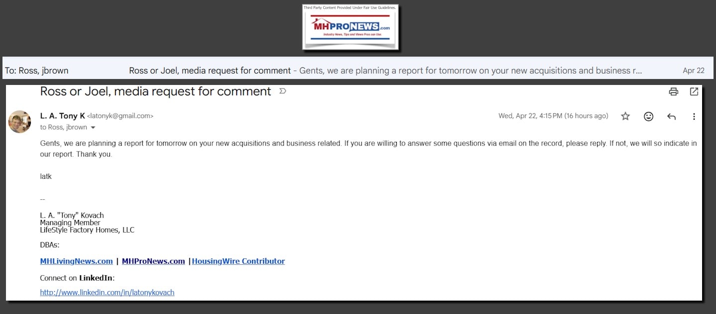 “Ross or Joel, media request for comment” said the message to Ross Partrich and Joel Brown at RHP Properties. “Gents, we are planning a report for tomorrow on your new acquisitions and business related. If you are willing to answer some questions via email on the record, please reply. If not, we will so indicate in our report. Thank you.” “RHP Obtains $830M Acquisition Financing for 36-Asset Manufactured Housing Portfolio,” stated a press release (see Part I) about what Law360 described as: “Commercial broker Newmark Group said it arranged $830 million for Michigan-based RHP Properties to purchase and refinance a manufactured housing portfolio made up of three dozen assets with 8,340 spaces…” A look at RHP Properties ‘about us’ page sounds impressive. It includes these statements on 4.22.2026 (circa 4:06 PM ET). “Providing Affordable Homes Across America Since 1988.” “Privately Owned and Operated.” “#1 Nation’s Largest Private Owner.” “$10 + Billion Company Asset Value.” “31 States WITH Community LOCATIONS.” “80,582 Home Sites among our Communities.” “375 Communities Across the Nation. “$438,000,000 invested in community improvements in the last 6 years,” but it is unclear if that investment includes the “7,974…new homes created” during an unstated timeframe. Some basic math would suggest that if RHP invested $70,000 per unit x 7,974 = $558,180,000, which would be far more than the 438M they say they have ‘invested in the last 6 years.’ Against that focused backdrop is the following facts-evidence-analysis (FEA) that will shed light not only on RHP Properties, but also on the Manufactured Housing Institute (MHI) – which they have been a multi-year member of – along with other dynamics at work in MHVille.