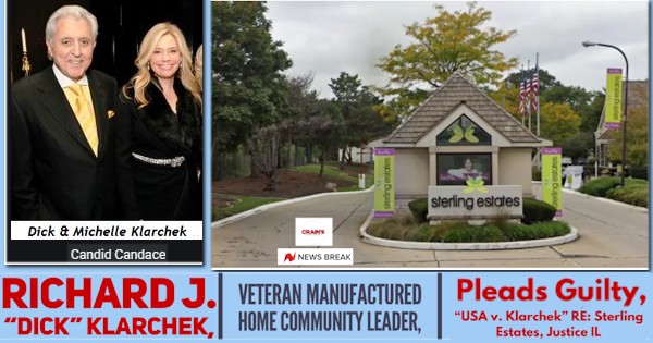 Richard J. “Dick” Klarchek, the former chairman and CEO of Chicago-based Capital First Realty, purportedly used phony residents at Sterling Estates manufactured home community in Justice, IL. Sterling is located in a Southwestern Chicago suburb, and the charges included falsified documentation meant to appear to a lender that seemed to boost occupancy and inflate site fee income. That was one of multiple schemes Klarchek-led Capital First Realty (CFR) allegedly used to defraud Bank of America (BOA), which serviced the loan on Sterling Estates.