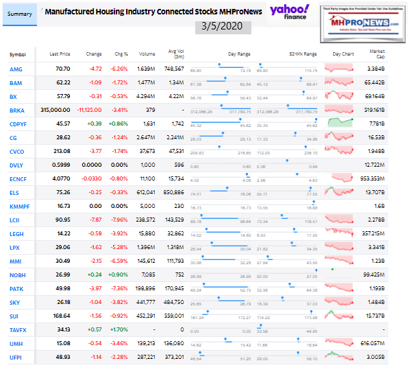 Manufactured Housing Industry Investments Connected Closing Equities Tickers