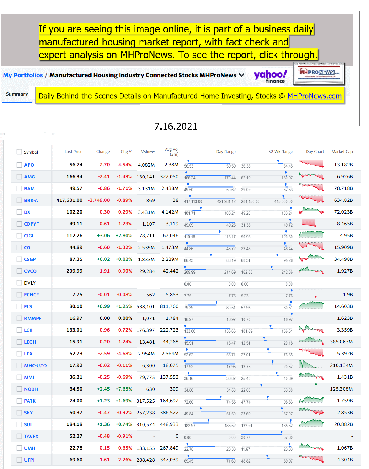 Disclosure. MHProNews holds no positions in the stocks in this report.