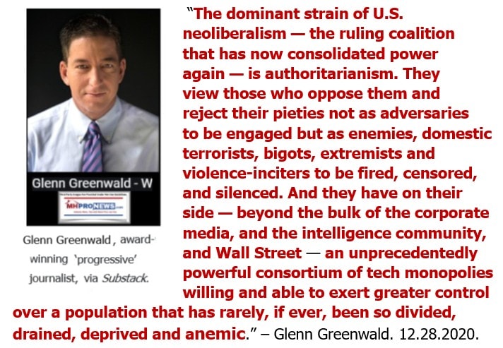 For years, MHProNews has sourced information from across the left-center-right divide and reported based upon the evidence, with a “We Provide, You Decide” © slogan. As our report linked below reflects, a left-leaning or ‘progressive’ journalist – not a Trump supporter – said that an authoritarian regime is coming. Glenn Greenwald specifically examines the opportunities that President Trump had to be a true authoritarian but noted that every time he declined doing so. That is candid journalistic objectivity.