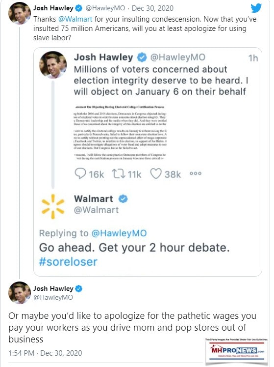 - Walmart Apologizes for Calling Sen. Hawley ‘Sore Loser’ After He Vows to Challenge Election Results
