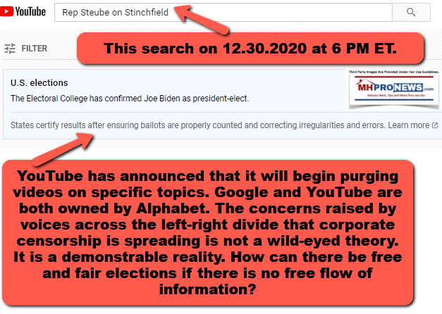 Let’s note that MHProNews contacted Newsmax earlier today to say that they have been mistaken in some of their reporting on their understanding of how the objection and voting will work on January 6, 2021. To illustrate, MHProNews was going to show that video clip, only it is not available on YouTube.
