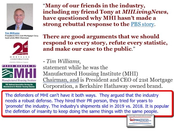 Williams said they were “hiring a seasoned media relations professional.” The stated goal, the Berkshire-owned 21st Mortgage Corporation CEO said – the “intent of MHI to broaden its public relations/communications focus to include positive consumer stories including testimonials on why people choose to live in and how they benefit from manufactured homes and living in our communities.”