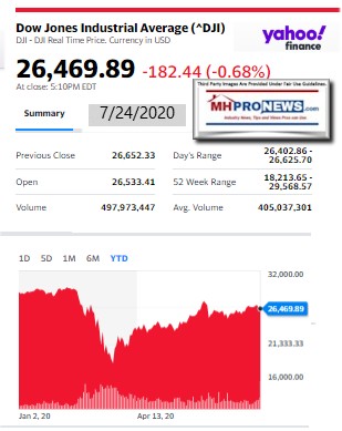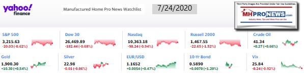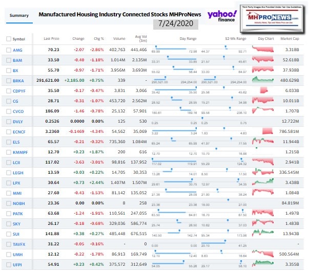 The featured focus segment of this evening’s report is found beyond the left-right headline news bullets and 2 of our 3 market snapshots at the close today. The manufactured housing industry connected stocks are near the end of the report each evening, after the featured focus and the related/recent report links.