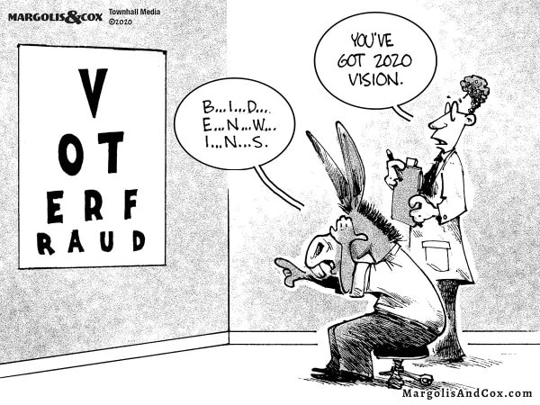 MargolisCoxPoliticalCartoonEyeExamVoterFraudBidenWinsYouHave2020VisionMHProNews