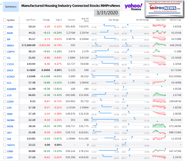 Manufactured Housing Industry Investments Connected Closing Equities Tickers