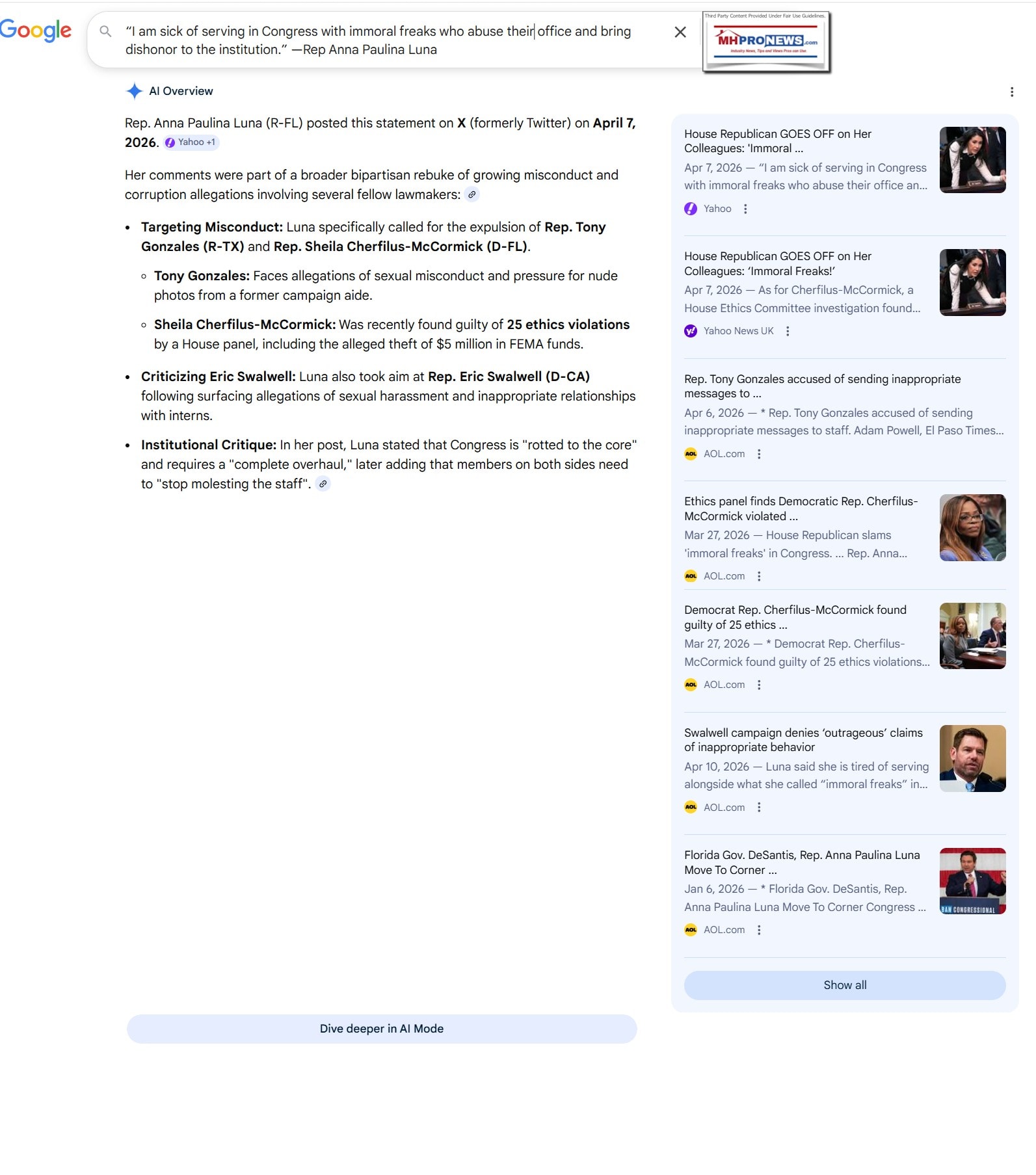 MHProNews further notes that while that thread was about concerns over improper sexual behavior by members of Congress, Paulina Luna is known for her concerns about other forms of abuses of power and failures by Congress.