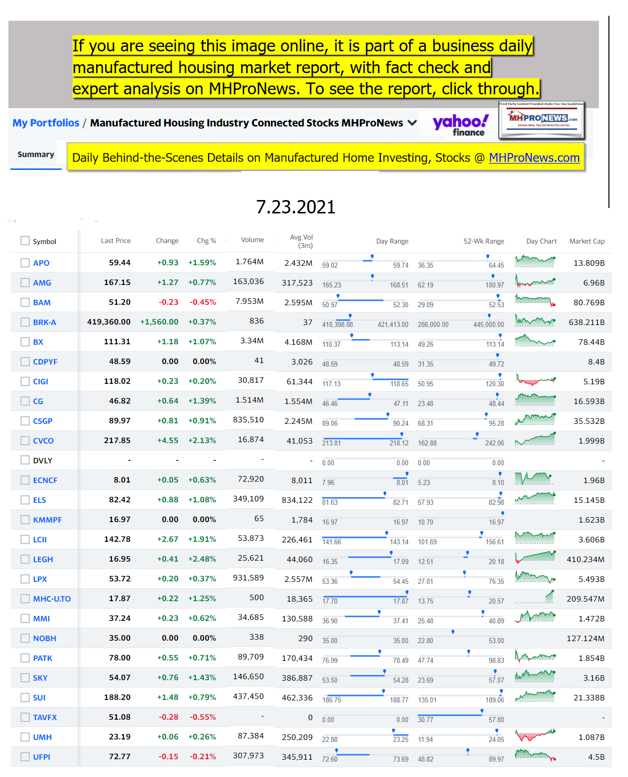 Disclosure. MHProNews holds no positions in the stocks in this report.