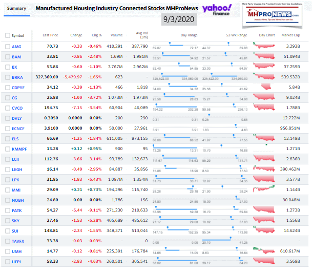 Manufactured Housing Industry Investments Connected Closing Equities Tickers