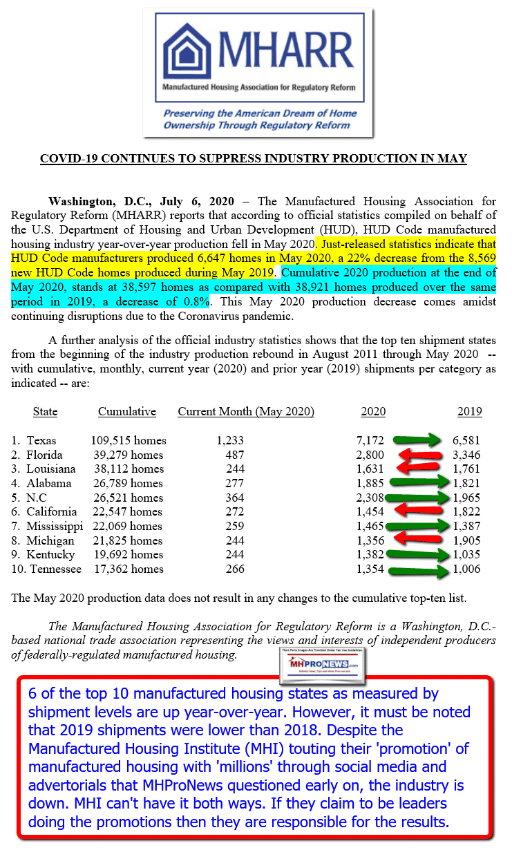 On July 15, 2020, the Manufactured Housing Association for Regulatory Reform (MHARR) issued a quite different statement. It opened with the following.