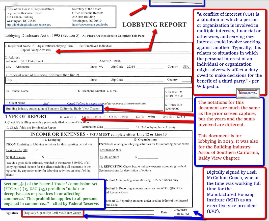 One of those coalition members that Gooch and MHI tout has actually done a better job than Gooch herself does by arguing for full implementation on all manufactured homes, not just the Clayton-Skyline Champion–Cavco Industries (CVCO) backed “new class of manufactured homes” that MHI rebranded as “CrossModTM” homes.