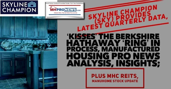 The #2 manufactured home builder, Skyline Champion (SKY), metaphorically and symbolically ‘kissed the ring’ of Berkshire Hathaway (BRK) on 8.2.2022 by using their BusinessWire service to publish their first quarter 2023 fiscal results. That will be provided below, followed by additional information, more MHProNews analysis and commentary in brief.