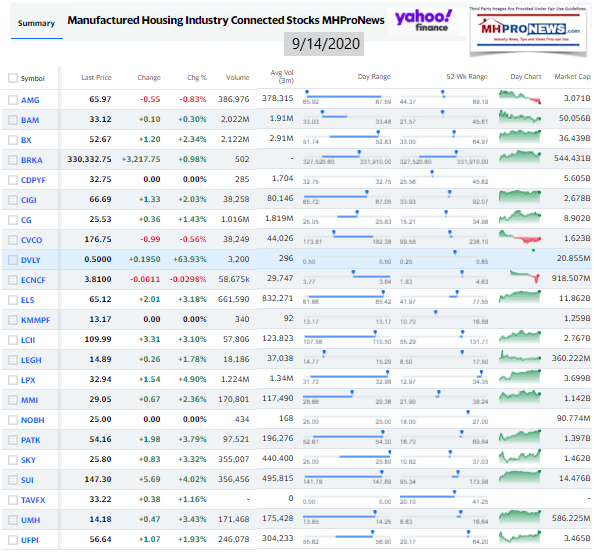 Manufactured Housing Industry Investments Connected Closing Equities Tickers