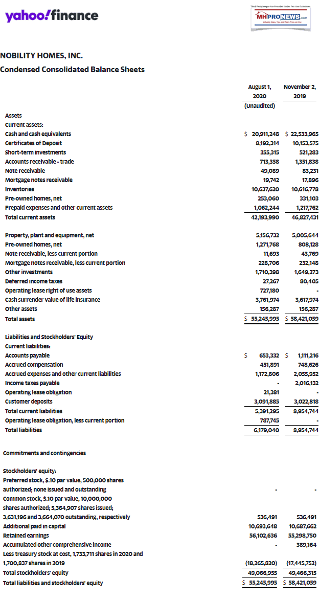 That noted, let’s pivot to our report on Nobility Homes, Inc (OTC:NOBH) quarterly results. They reflect the impact of the COVID19 pandemic on a vertically integrated company. Notice to new readers: Nobility and Flagship are two distinct companies in different parts of the U.S. with distinctive leadership.
