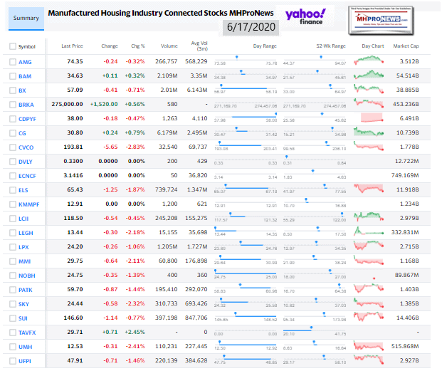 Manufactured Housing Industry Investments Connected Closing Equities Tickers