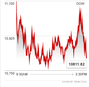 CNNMoney reports European debt crisis, dips in U.S. home prices and other concerns helped nervous investors to sink the Dow, while gold shot through the $1800 mark. Treasury yields are near record lows. In a recent interview, columnist Pat Buchanan commented that the dollar has sank 30% year to date vs. the Swiss franc. The Yahoo! Manufactured Housing Composite index -2.81% to close at 1019.30 Affiliated Managers Group closed at $ 81.97 Down -6.10 -6.93%. Clayton/VMF MH manufacturing, lending and supplier parent company Berkshire Hathaway 102450.00 -6650.00 (-6.10%). Cavco 30.99 -4.56 (-12.83%). Deer Valley, Champion Enterprises and Palm Harbor Homes all remain unchanged. Drew Industries 18.75 -0.70 (-3.60%). Equity Lifestyle Properties 58.59 -2.59 (-4.23%). Nobility Homes bucked the downward trend, rising 8.14 +0.37 (4.76%). Patrick Industries 1.95 -0.40 (-17.02%). Third Avenue Value Fund also rose 46.78 1.77 | 3.93% UMH Properties 9.30 -1.21 (-11.51%). Skyline 9.56 -1.70 (-15.10%). Supplier UFPI 25.10 -1.26 (-4.78%) but moved up nicely in after hours trading.
