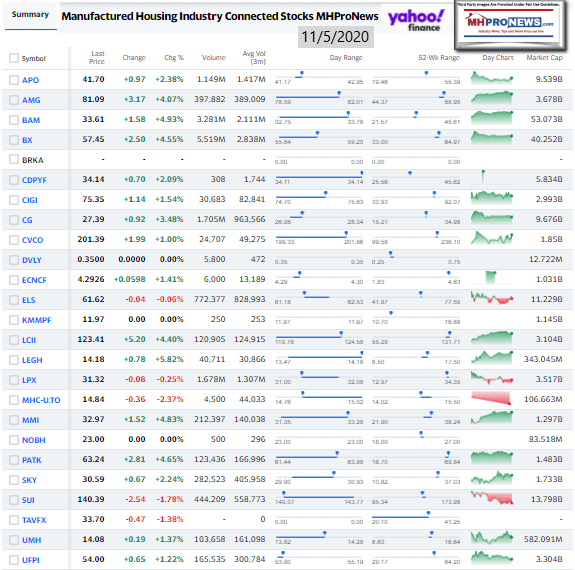 Manufactured Housing Industry Investments Connected Closing Equities Tickers
