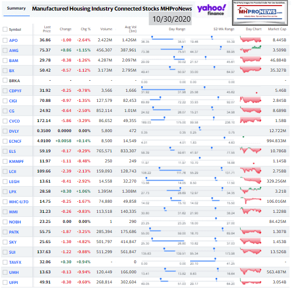 Manufactured Housing Industry Investments Connected Closing Equities Tickers