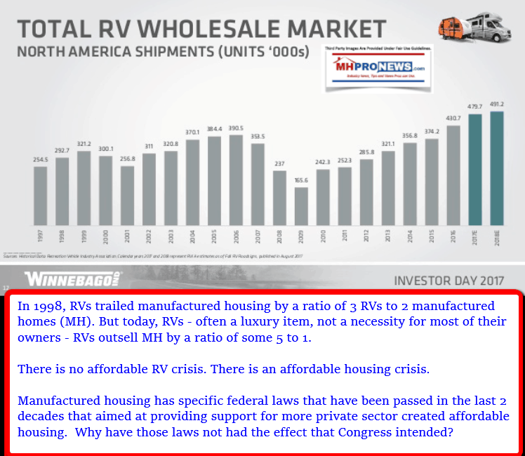 So, as will be noted below by Sun Communities Inc (SUI) management in their quarterly earnings call, there are now over 11 million RVs in the nation. The RV industry surged past manufactured housing in the last 2 decades. In 1998, RVs trailed manufactured home shipments. RVs have surged past manufactured homes by ratio that has often hovered around 5 RVs to 1 MHs.