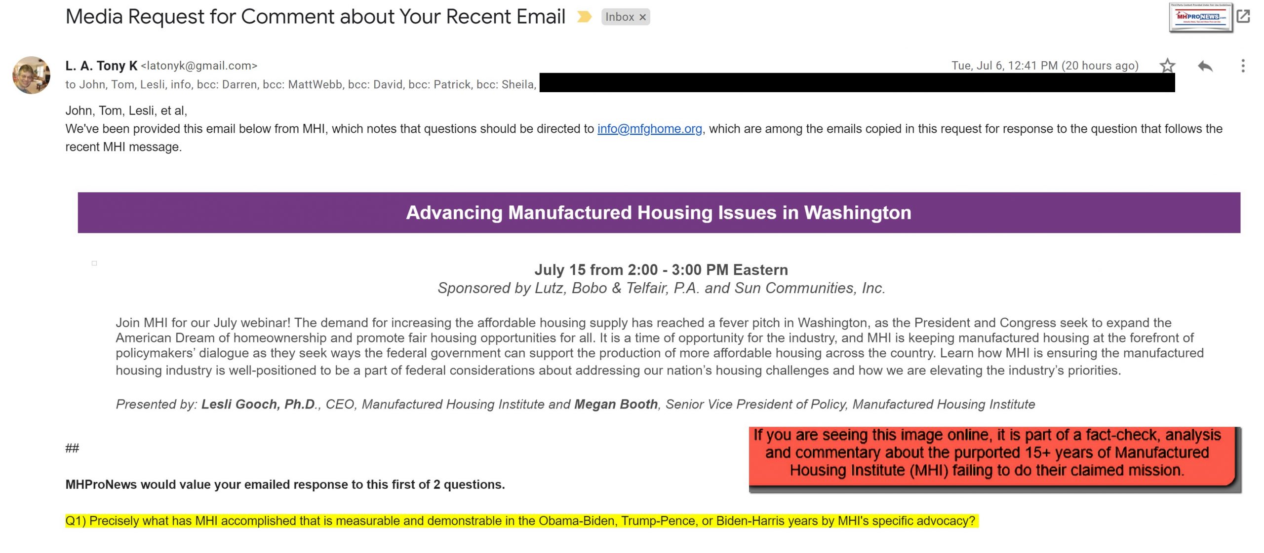 Additional Information on MHI Webinar Pitch Email, More MHProNews Analysis and Commentary