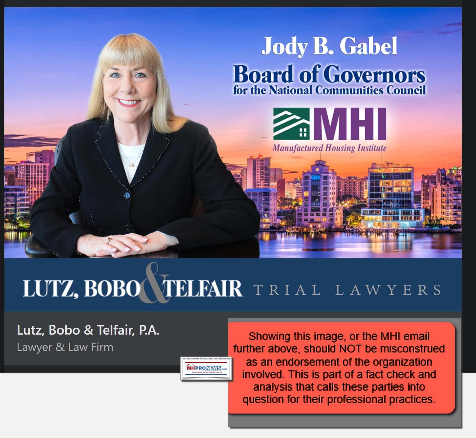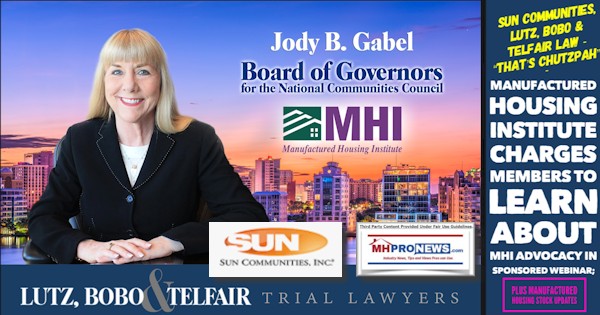 Ironically, the MHI email in question admits that their webinar is sponsored by affiliated MHI member attorneys. Lutz, Bobo & Telfair, P.A. But Sun Communities is also stated as a co-sponsor of the MHI event. So, there appears to be a heaping helping of chutzpah.