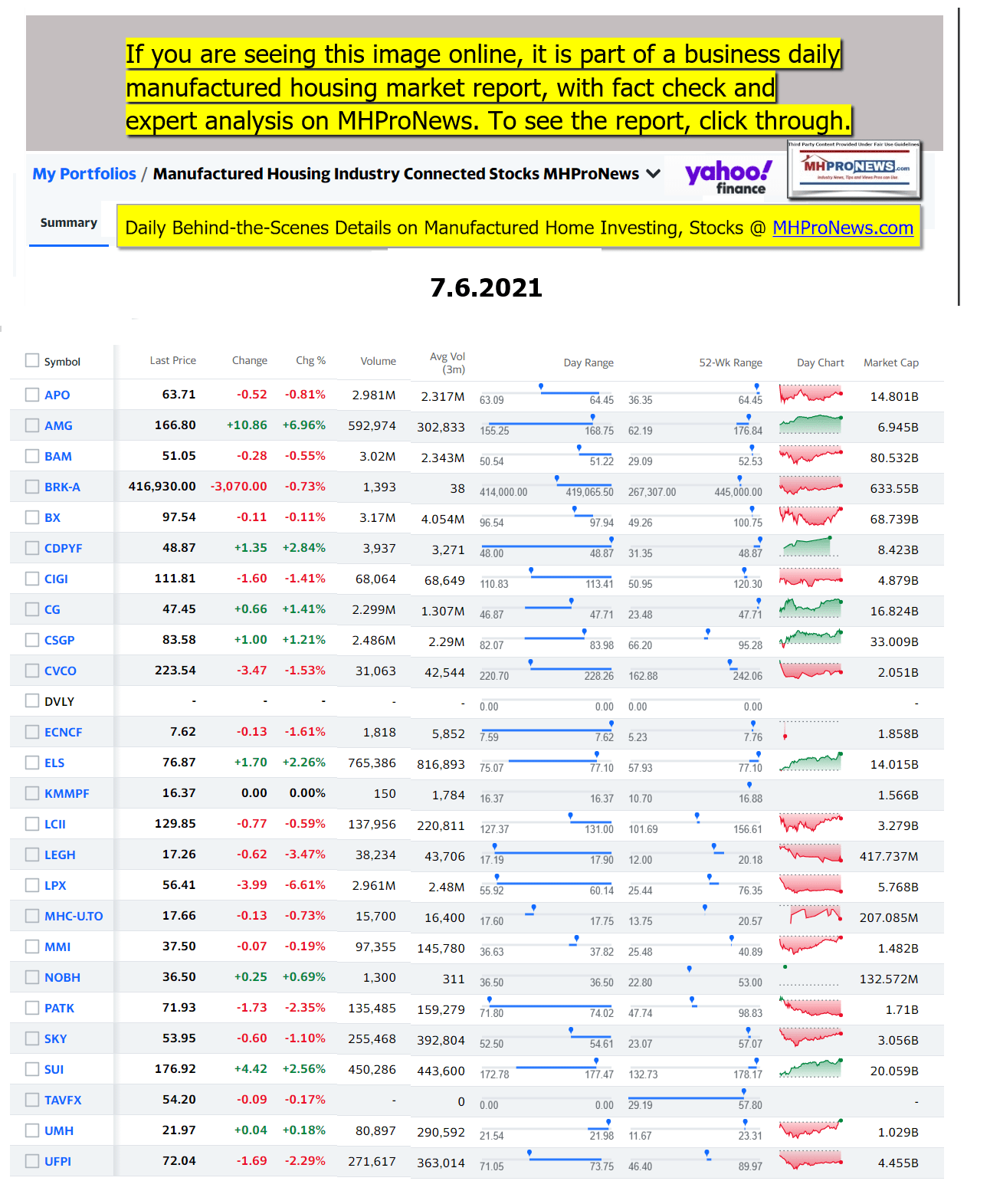 Disclosure. MHProNews holds no positions in the stocks in this report.