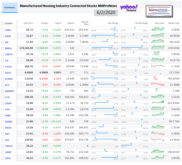 Manufactured Housing Industry Investments Connected Closing Equities Tickers