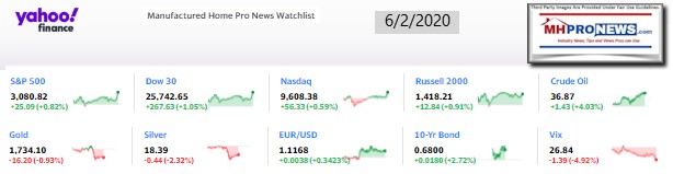 10 Market Indicator Closing Summaries – Yahoo Finance Closing Tickers on MHProNews…