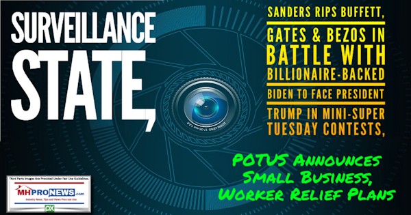 SurveillanceStateSandersRipsBuffettGatesBezosBattleBillionaireBackedBidenFacePresidentTrumpMini-SuperTuesdayContestsPOTUSAnnouncesSmallBusinessWorkerReliefPlansManufacturedHomeProNews