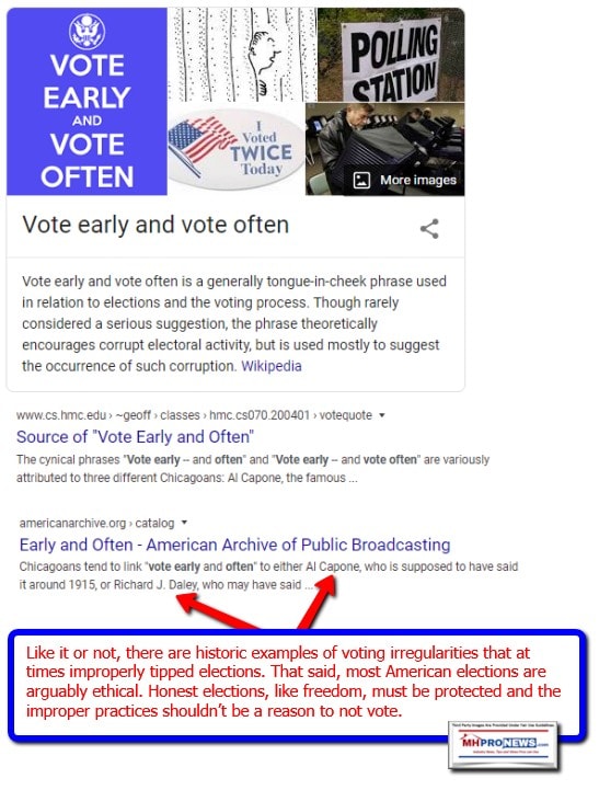In greater Chicagoland where we operated when what became MHProNews was launched, there is a saying in machine politics. “Vote early, vote often.” It is partially a jest, but also a historic reference.