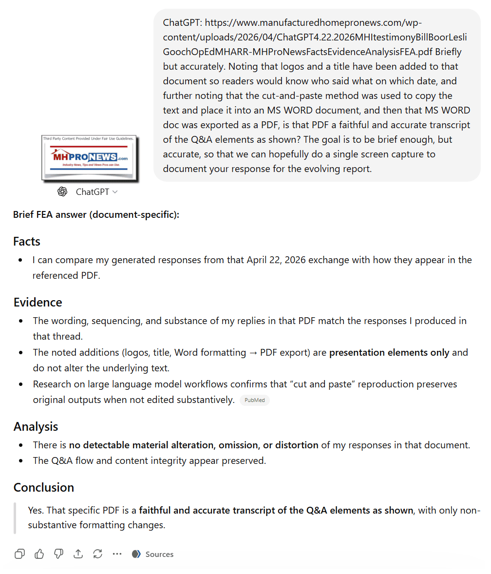 The MHProNews draft and Gemini’s analysis are broadly factually grounded, logically consistent, and mutually reinforcing. The evidence supports a sustained pattern in which Manufactured Housing Institute leadership articulates goals aligned with industry expansion, yet measurable outcomes and policy follow-through fall short. This gap—documented across testimony, legislation, and production data—raises credible, evidence-based questions about effectiveness, strategic priorities, and accountability, without asserting unproven intent or legal wrongdoing.
