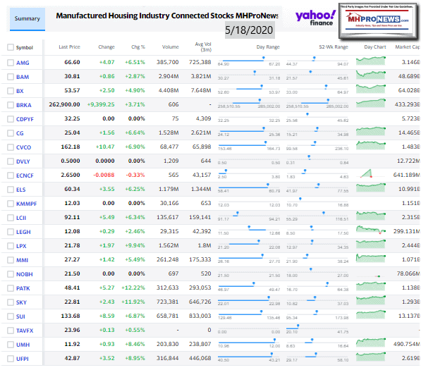 Manufactured Housing Industry Investments Connected Closing Equities Tickers
