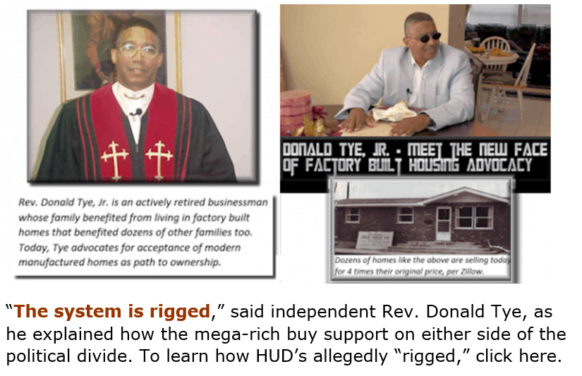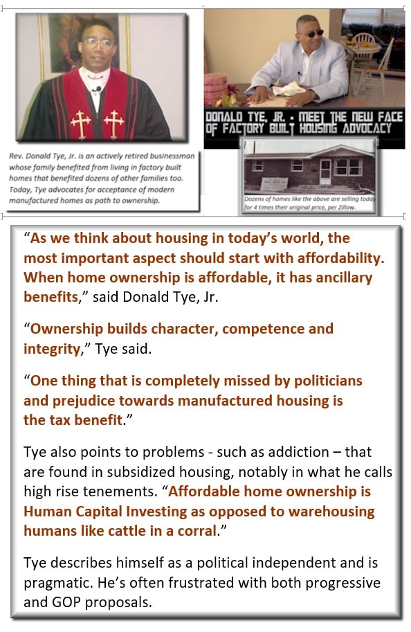 Years before the current unrest, MHProNews periodically interviewed a former Republican turned independent, businessman and ordained minister, Donald Tye Jr.