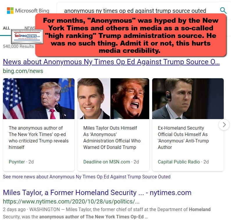 The left-of-center New York Times was embarrassed again this past week. Once more, one of their anti-Trump ‘bombshells’ – a supposed high ranking official that ripped President Trump in an anonymous op-ed they published – turned out to be a mid-level player with almost no contact with the president. That same person – Miles Taylor – lied on camera with left-of-center CNN about that matter. He also works with CNN and has reportedly been paid by left-leaning and-pro-Biden Google too.