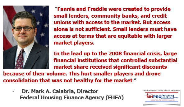 DrMarkCalabriaQuoteFHFADirectorSmallerLendersCapitalMarketsConsolidationMonopolizationManufacturedHomeProNews
