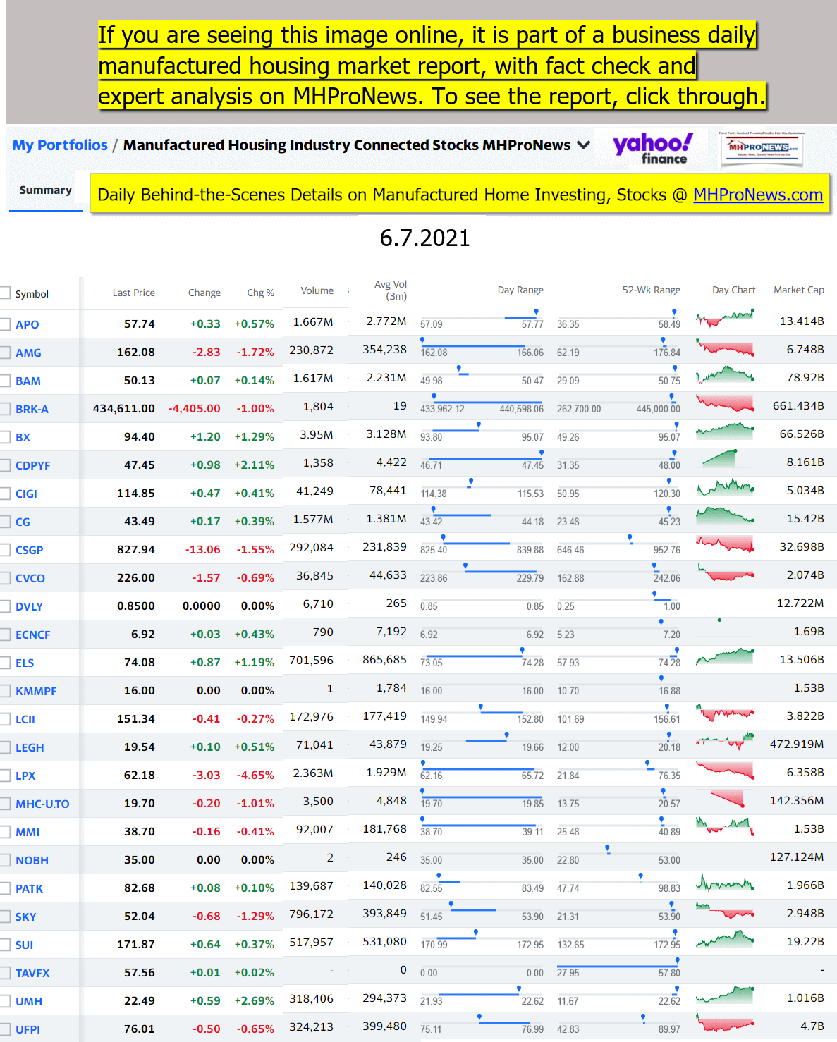 Disclosure. MHProNews holds no positions in the stocks in this report.