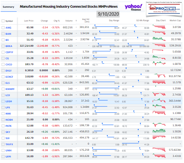 Manufactured Housing Industry Investments Connected Closing Equities Tickers
