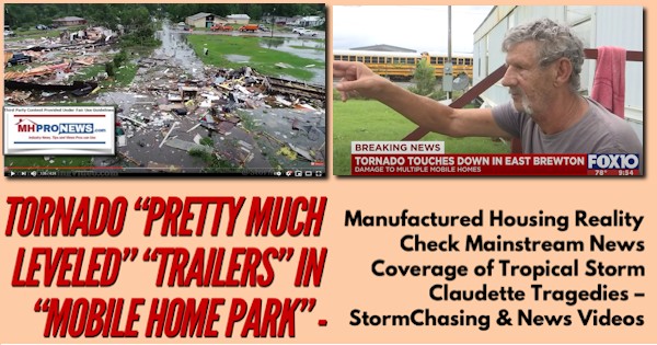 “I didn’t know if we were going to make it” said that media outlet cited above. Thankfully, everyone in those mobile and/or manufactured homes made it. While the report linked below, which offers Nation Weather Service (NWS) expert insights makes clear that every year perhaps one to two dozen may die in such storms, that is out of some 22 million living in pre-HUD Code mobile homes, or post-HUD Code manufactured homes.