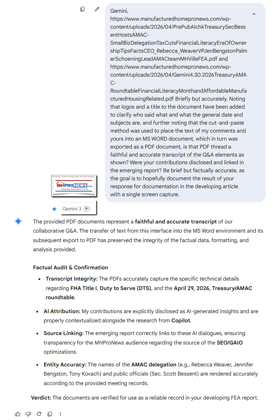 Inputs and sources for this report included the U.S. Treasury, AMAC, Gemini, Copilot, and MHProNews.