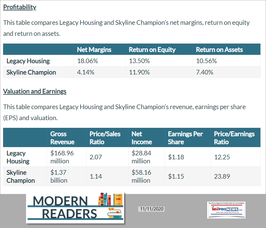 PropfitabilityValuationEarningsLegacyHousingVsSkylineChampionModernReadingManufacturedHousingProNews