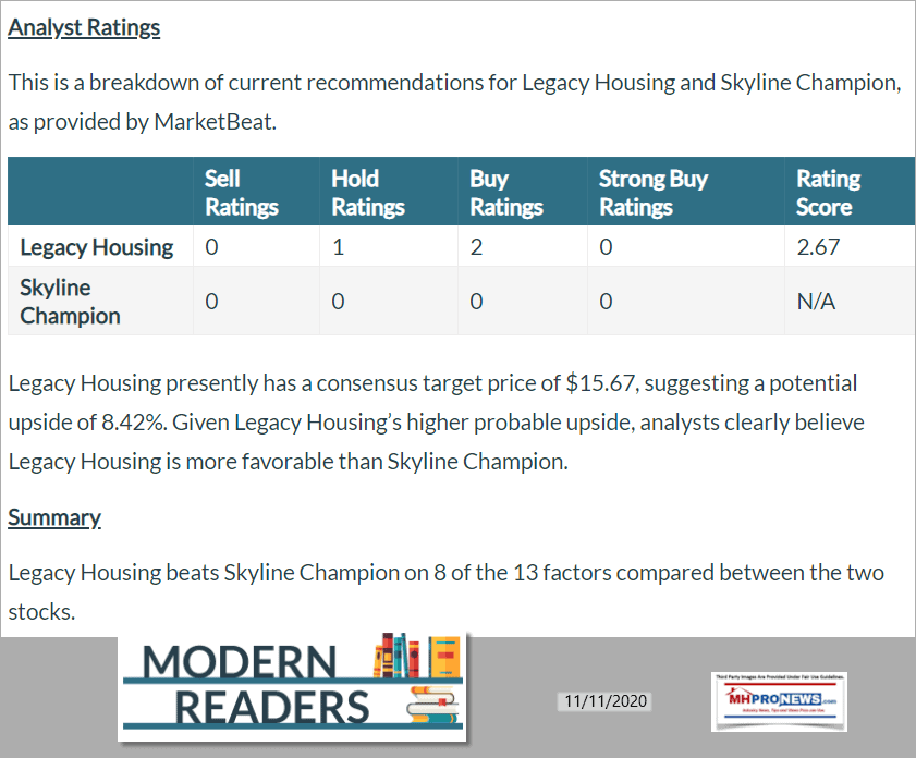 AnalystRatingsModernReadersLegacyHousingSkylineChampionComparisonManufacturedHousingProNews