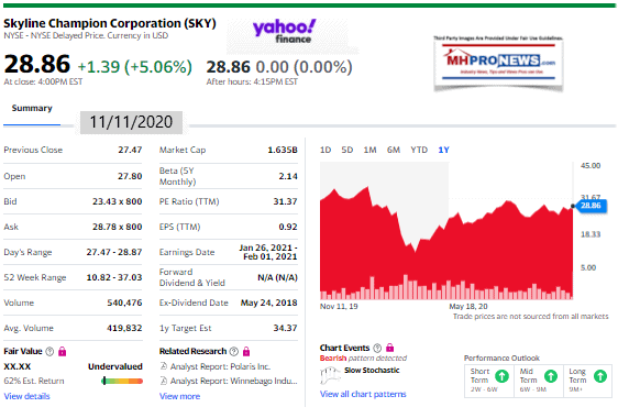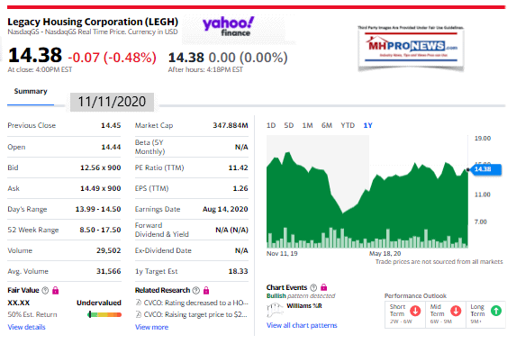 YahooLegacyHousing1YearStockTrack11.11.2020ManufacturedHousingProNews