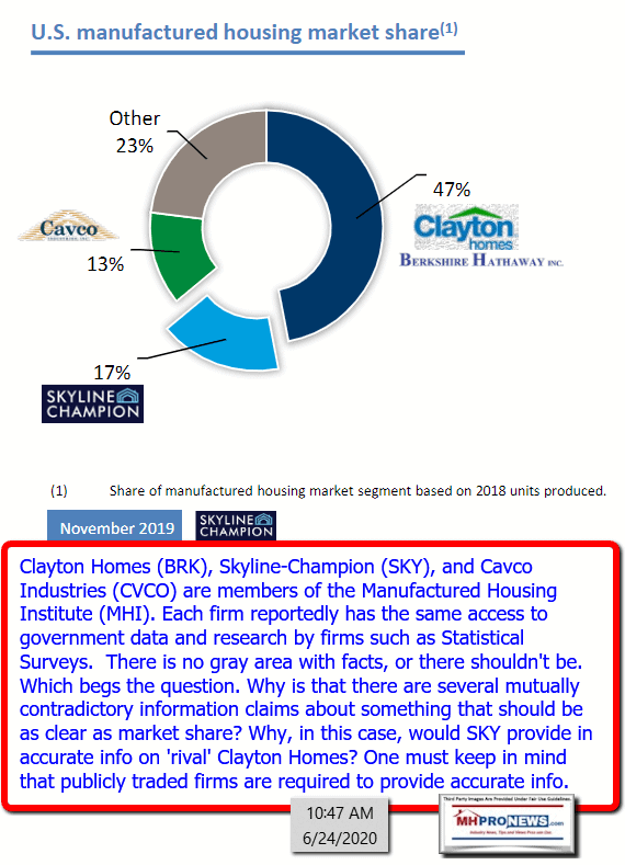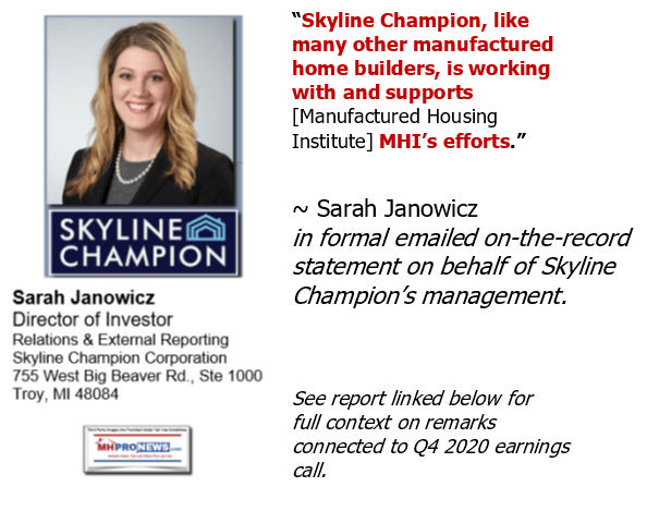 There have been problematic statements made by Skyline Champion, with examples above and below.
