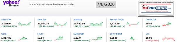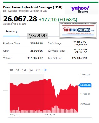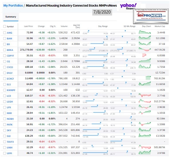 Loudon’s list will be our featured focus, which is found beyond the left-right headline recap today. It is also beyond 2 of the 3 market summary graphics and the quotable quotes tonight. The final manufactured home specific stock values at the closing bell is found below the featured focus and related reports.
