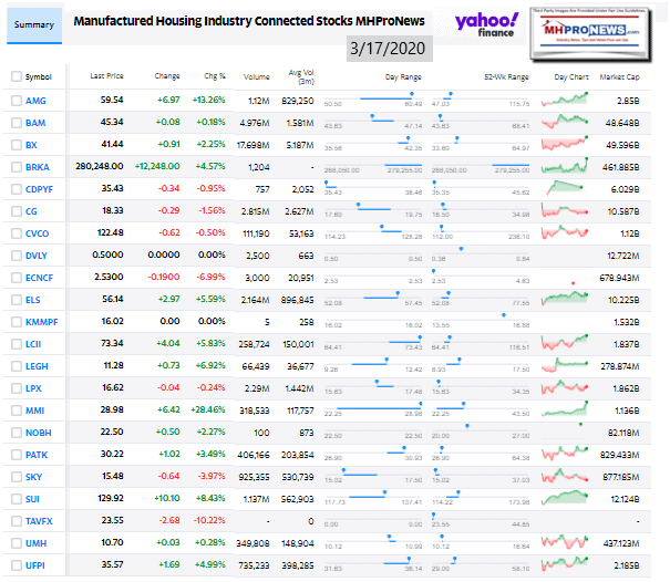 Manufactured Housing Industry Investments Connected Closing Equities Tickers