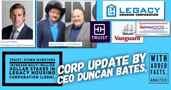 Truist, Other Investors Increase Multi-Million Dollar Stakes in Legacy Housing Corporation (LEGH), Corp Update by CEO Duncan Bates, with Added Facts, Analysis