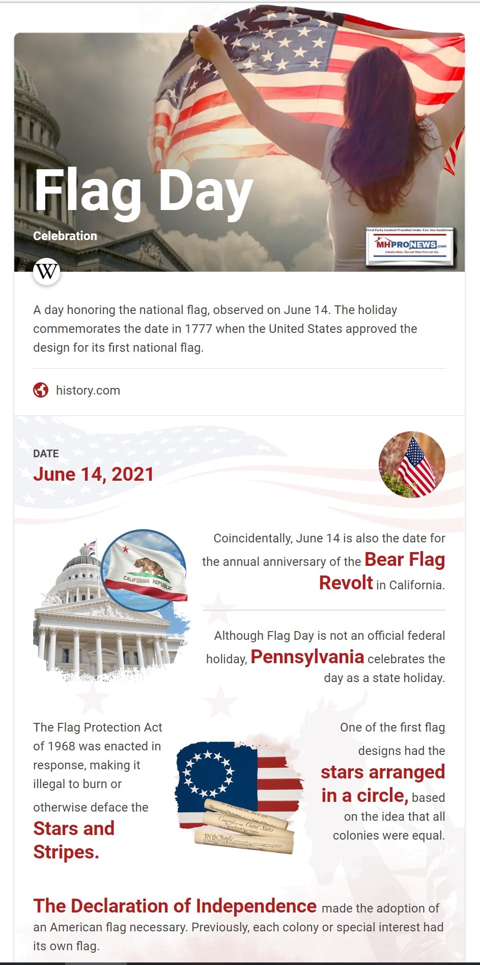 Flag Day is not a national holiday, but perhaps it should be. Flag Day is one day before the ‘birthday’ of the modern manufactured housing industry, June 15, 1976. My parents and their children celebrated Flag Day every year for their own good reasons.