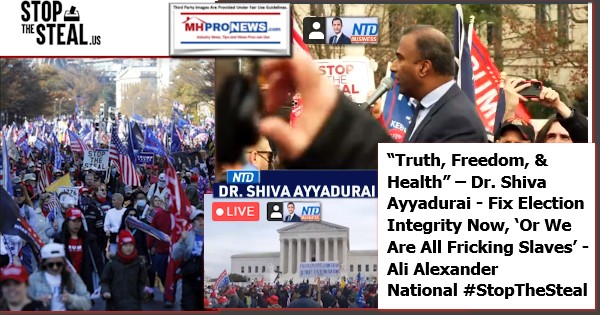 “Truth, Freedom, and Health” – Dr. Shiva Ayyadurai led the #StopTheSteal crowd in Washington, D.C. in the rally-style chant. The message in part is that if Americans don’t stand up and ‘Fix Election Integrity Now,’ ‘Or We Are All Fricking Slaves,’ said Ayyadurai.