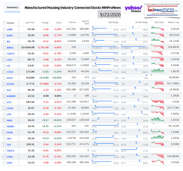 Manufactured Housing Industry Investments Connected Closing Equities Tickers